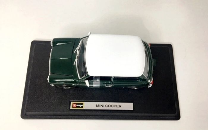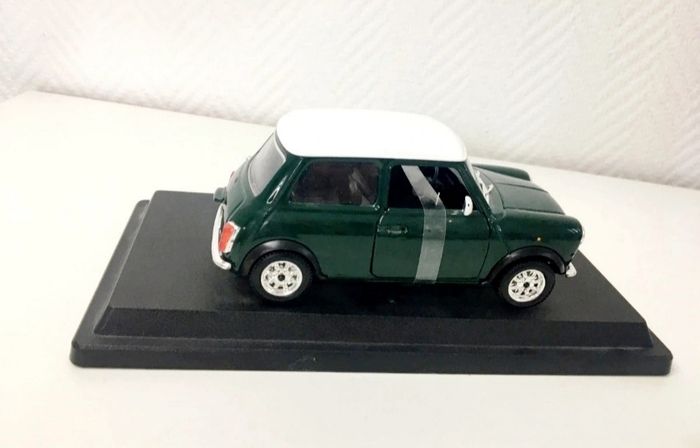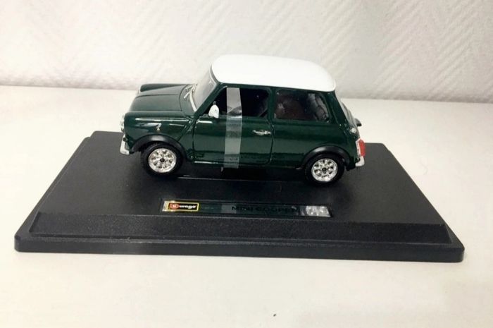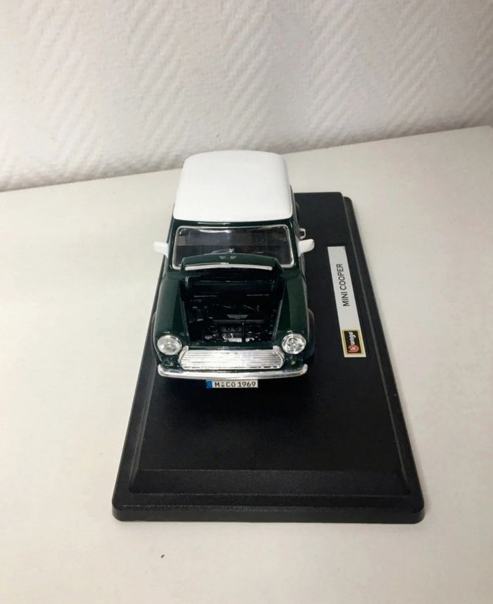 Magnifique miniature Bburago Mini Cooper 1969 verte. - Type de produit : Voiture miniature - Marque : Bburago - Modèle : Mini Cooper 1969 - Couleur : Vert En très bon état, il manque juste la poignée de porte et léger défaut sur le rétroviseur voir photos Une pièce de collection idéale pour les passionnés de voitures anciennes !