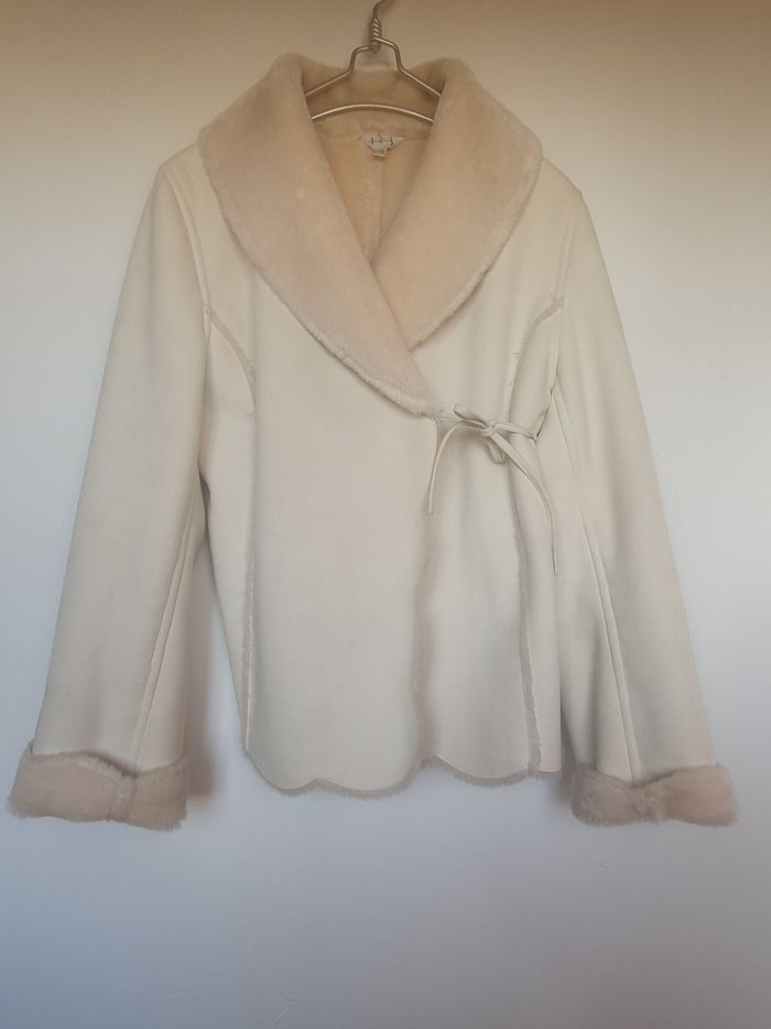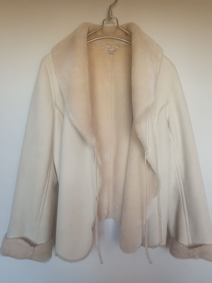 Blouson en fausse fourrure beige, effet cache cœur, maison 123, Taille 44