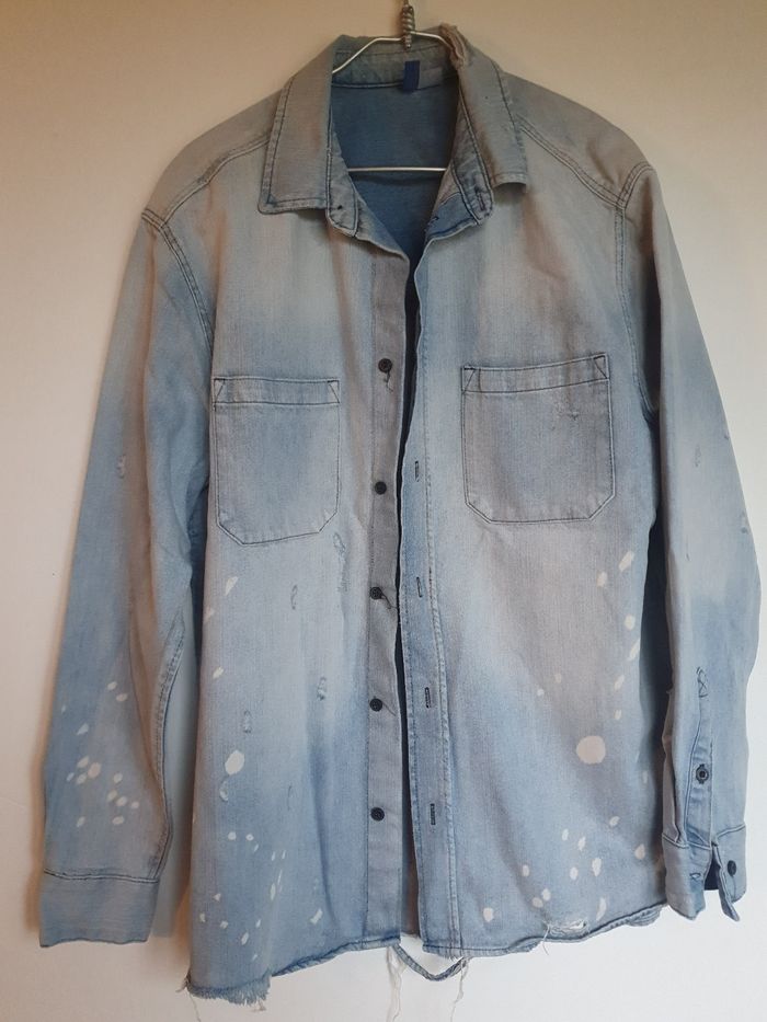 SurChemise en jeans effet délavé et vieilli, bleu ciel, taille M