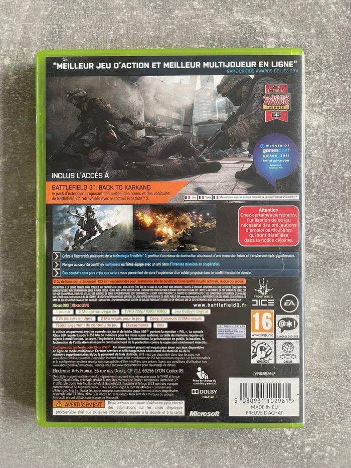 Jeu pour Microsoft xbox 360, Battlefield 3, limited edition en français.