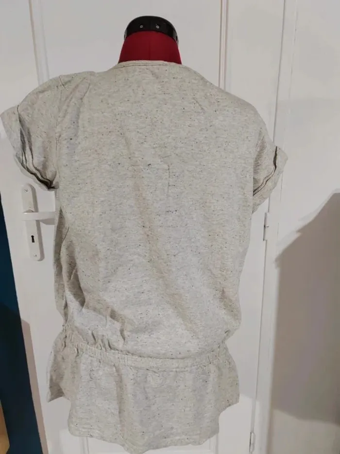 Largeur à plat sous les aisselles 54 cm largeur au niveau de la taille 49 cm jusqu'à 63 en tirant sur l'élastique longueur totale 74 cm