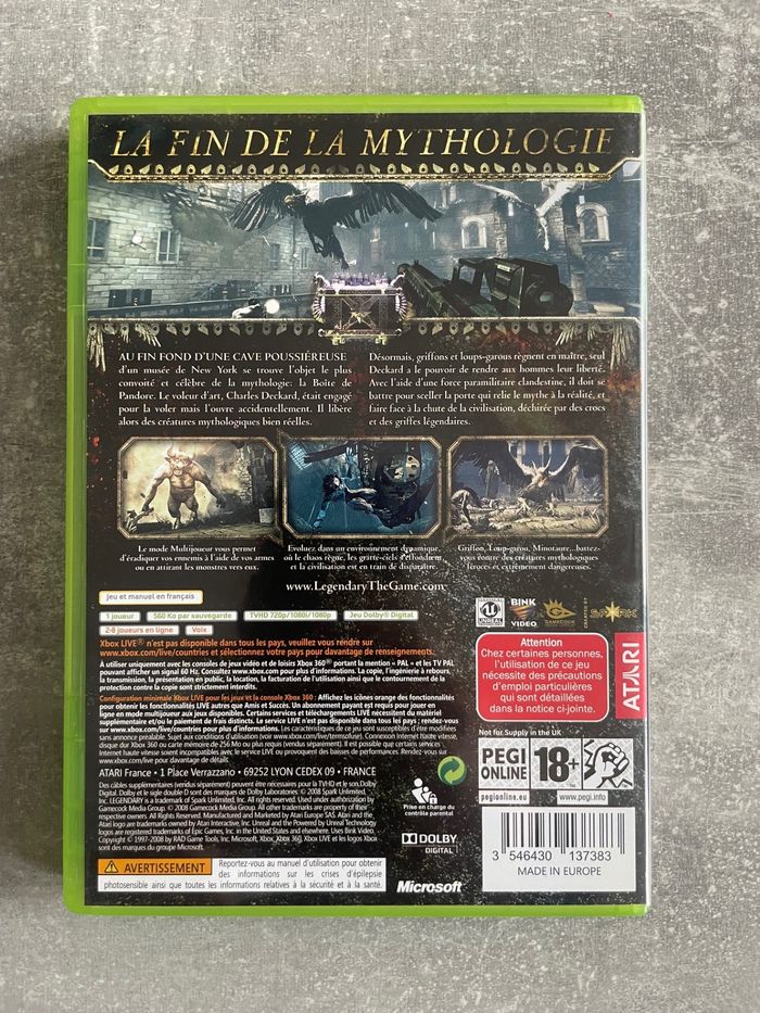 Jeu pour Microsoft xbox 360, Legendary en français.