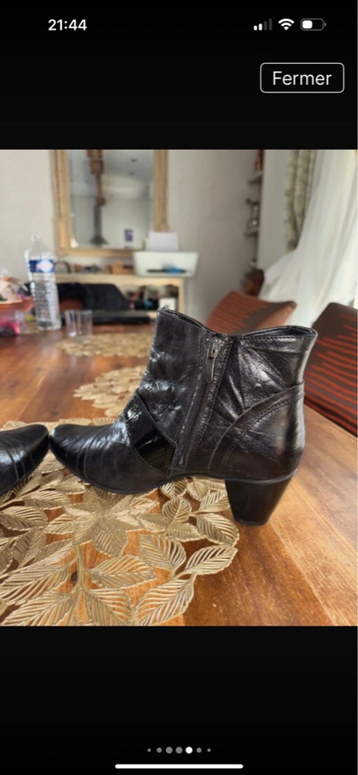 Bottines Alpina en cuir souple et lisse noir - Taille 37 - Talon 5 cm