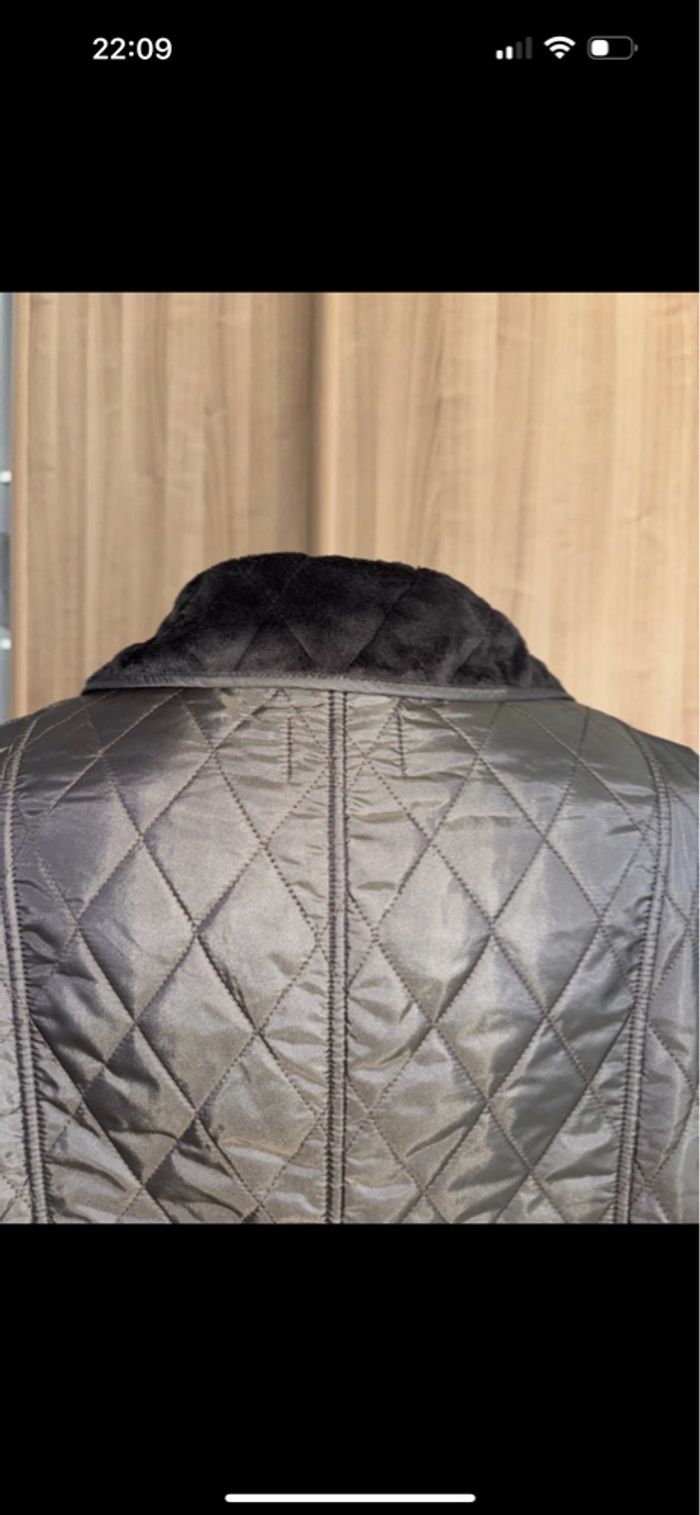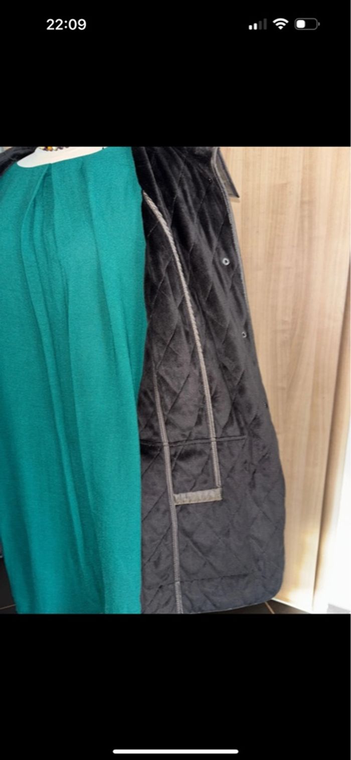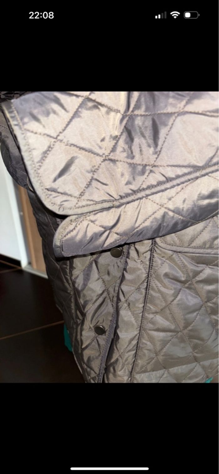 Veste matelassée chaude et imperméable toute doublée genre polaire très doux au toucher, 2 grande poches spacieuses de chaque côté. Fermeture de 7 pressions. en très bon état.