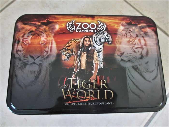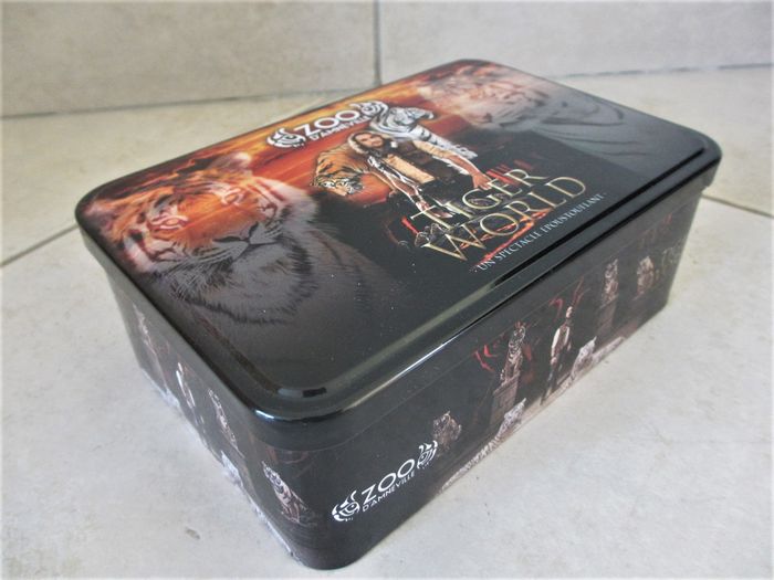Boîte en métal Zoo d’Amnéville contenant 6 sous-verres et mug en verre gravé Tigerworld avec sous-ta - photo numéro 1