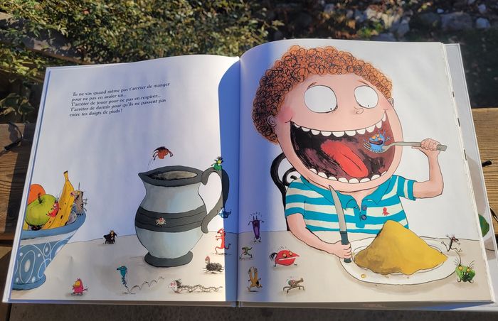 COMMENT RATATINER LES MONSTRES ? Tu as peur des monstres qui se cachent sous ton lit ? Des petits diables à tentacules ? Des fantômes à gros sourcils et des ogres à menton velu ? Ah ah ah ah ! C'est que tu n'as pas lu Comment ratatiner les monstres !Car si tu l'avais fait, tu saurais qu'il suffit d'un peu de méthode et quelques recettes imparables pour faire décamper les pires monstres ! Avec le manuel P'tit Glénat du chasseur de monstres, c'est TOI qui va devenir la terreur des grosses bébêtes ! Un album détonnant, truffé d’astuces inédites et… MONSTRUEUSEMENT drôle ! Dimensions 25.5 x 0.7 x 28.4 cm Très bon état Mes autres livres enfants : #livreenfantmooglou