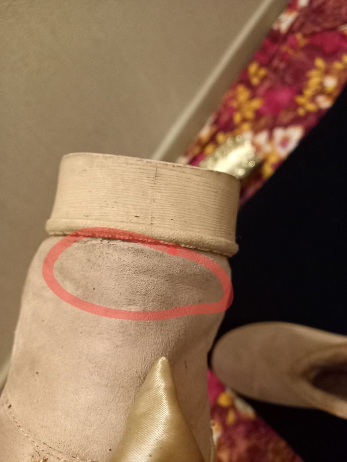 !! Le flot à l'arrière a jaunie et durci.VOIR photo 3 À l'arrière d'une chaussure et sur le côté d'une chaussure il y a des traces d'usure VOIR photos 4 et 5. Il y a un plis à l'avant des chaussures VOIR photo 6!! Pointure: 39 🙂Je réponds aux messages pour toutes infos complémentaires