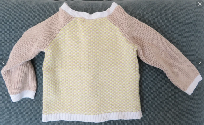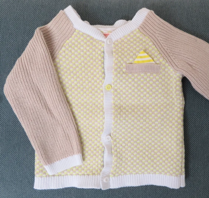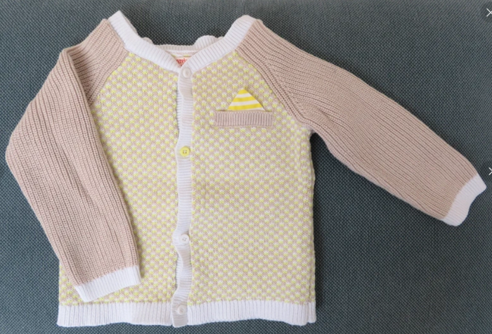 Très beau gilet de la marque DPAM, taille 9 mois. Couleurs jaune citron et taupe, superbe détail de la poche avant. Excellent état, a été porté 1 fois (donc lavé 2 fois en tout, une fois en sortie de magasin avant de le porter, 1 fois après l'avoir porté). Acheté 17,99€ en magasin.