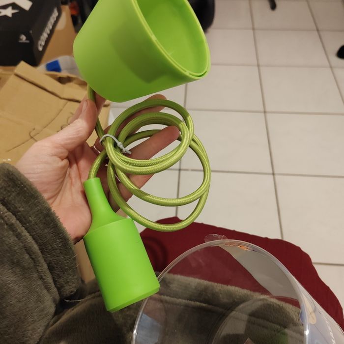 Suspension lampe verte, moi jappel cela un lustre lol enfin Lot de 22 réglable aussi en hauteur pour de jolie contraste 40 er ferme