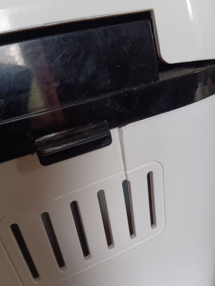 En bon état, juste deux petites rayures dans le fond du plat et une petite fissure sur le plastique à l'arrière (voir dernière photo), mais qui n'empêchent pas le bon fonctionnement.
