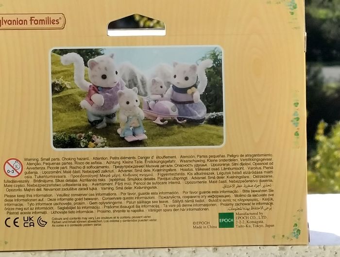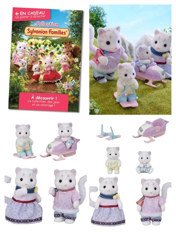 SYLVANIAN FAMILIES NOUVEAUTÉ. 4/9 ANS. MIXTE- Adorable ! Cette nouvelle famille à tout pour plaire et stimuler l'imagination des enfants ! - SET 5814 + de 6 PIÈCES : LA FAMILLE PANTHÈRE DES NEIGES. Présentation : Nom de famille : Alpine. Hope, la mélanger. Gérald, le papa. Lara, le bébé fille. Rumi le bébé fille assise. Cette nouvelle famille est habillée avec soin dans des tenues hivernales amovibles. Le coffret inclut également une Moto-neige et une paire de skis, avec bâtons intégrés parfait pour partir à l'aventure dans les paysages enneigés de Sylvanian. Chaque me bre de la famille arbitre un pelage blanc tâché de gris et porte une tenue soignée. Les parents possèdent une longue queue toute douce et des vêtements à l', imprimé léopard. La longue queue des parents est idéale pour envelopper les bébés lorsqu'ils sont fatigués et les bercer. Regarde deriere les oreilles des figurines : le motif ressemble à des pétales de fleurs! Pour encore + de fun, le Moto-neige peut même tracter des voiturettes des Sets des jumeaux ( vendus séparément). COFFRET À 25 € Cette nouvelle famille Sylvanian est adaptée pour les petits garçons et les petites filles fans de la collection, et sera à coup sûr un excellent Cadeau pour un Anniversaire .