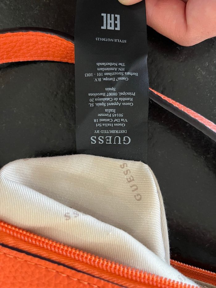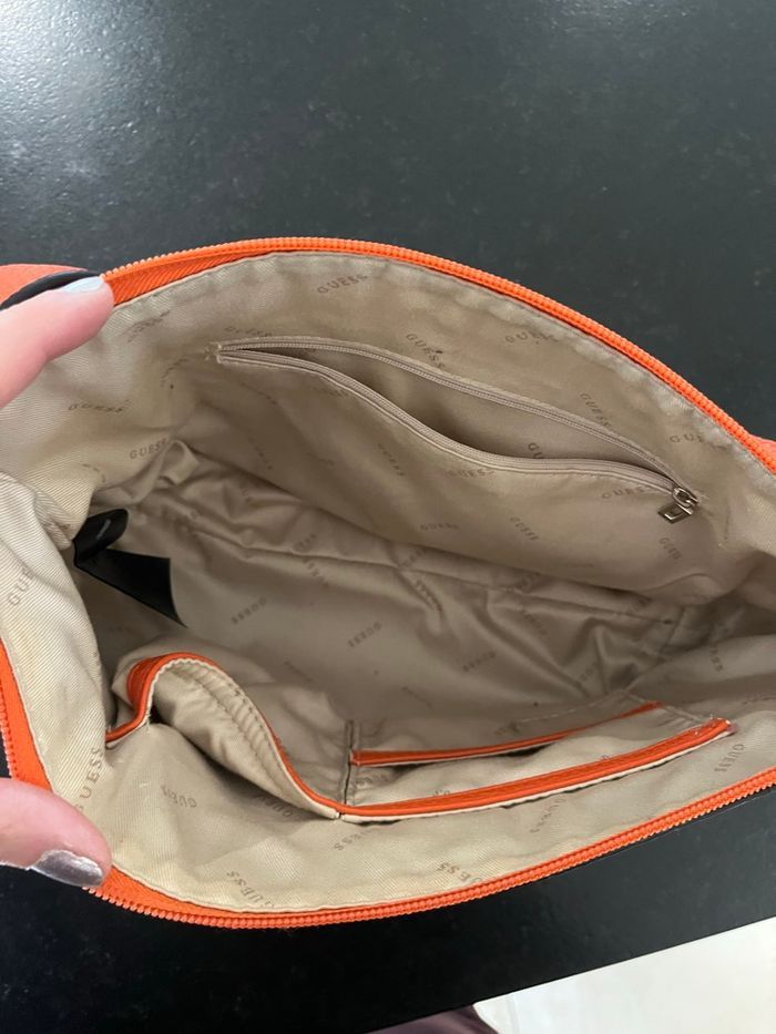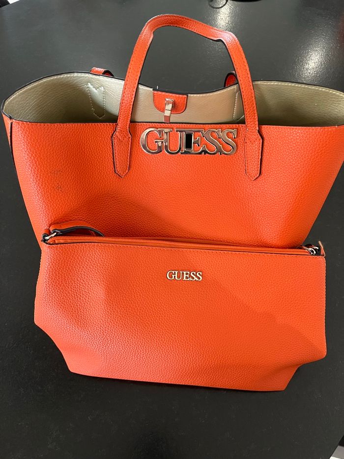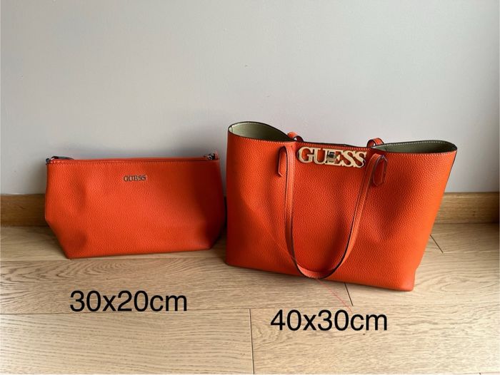 Vends deux sacs à mains Guess orange Le plus petit 30x20cm excellent état jamais porté Le plus grand sans poche 40x30cm un peu abîmé à quelques endroits