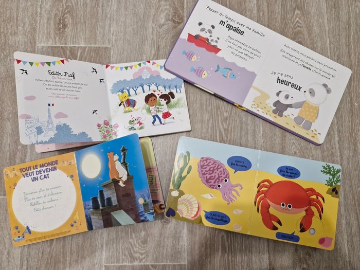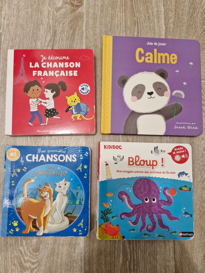 Livres d'occasion en bon état général, j'ai renforcé et scotché les couvertures si besoin. Toutes les puces de sons fonctionnent et les piles sont neuves.
