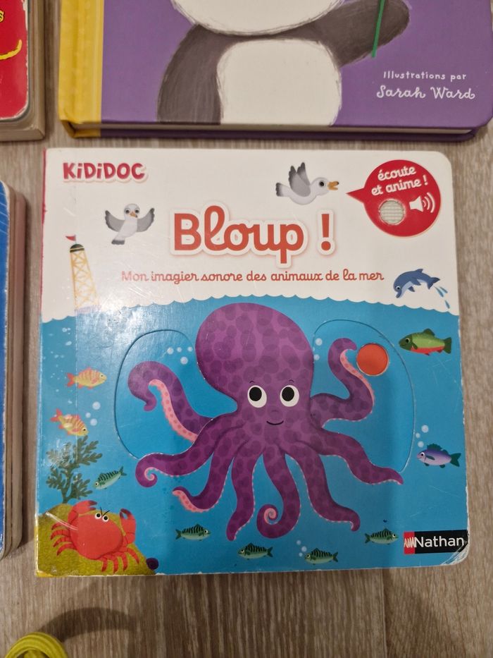 - livre sonore Kididoc sur les animaux de la mer, avec des animations à toucher avec le doigt pour relever les puces de sons (prix neuf 14.95€)