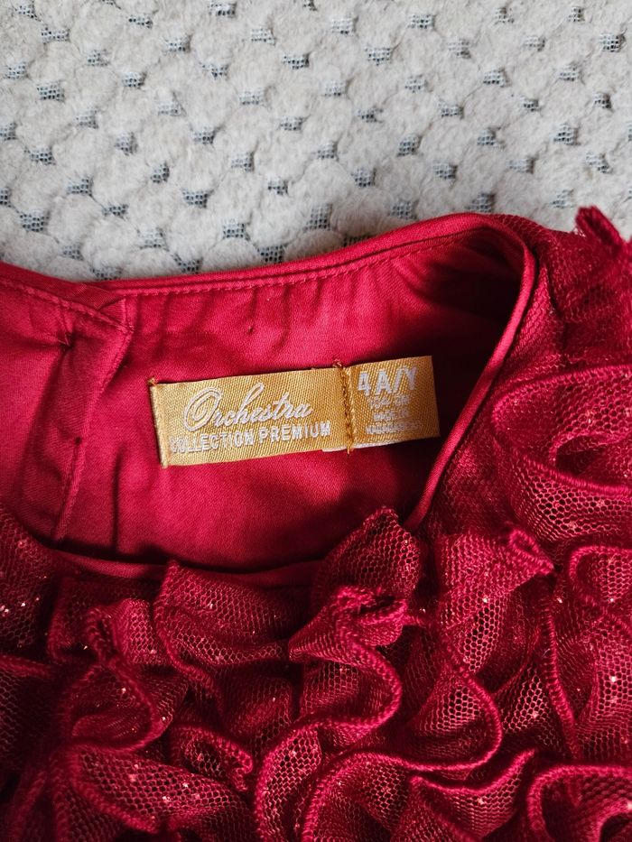 Robe rouge brillante, marque orchestra taille 4 ans Porté 1 fois .