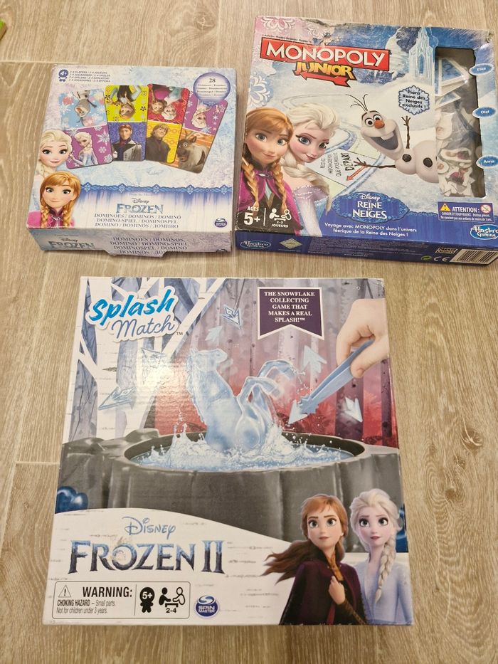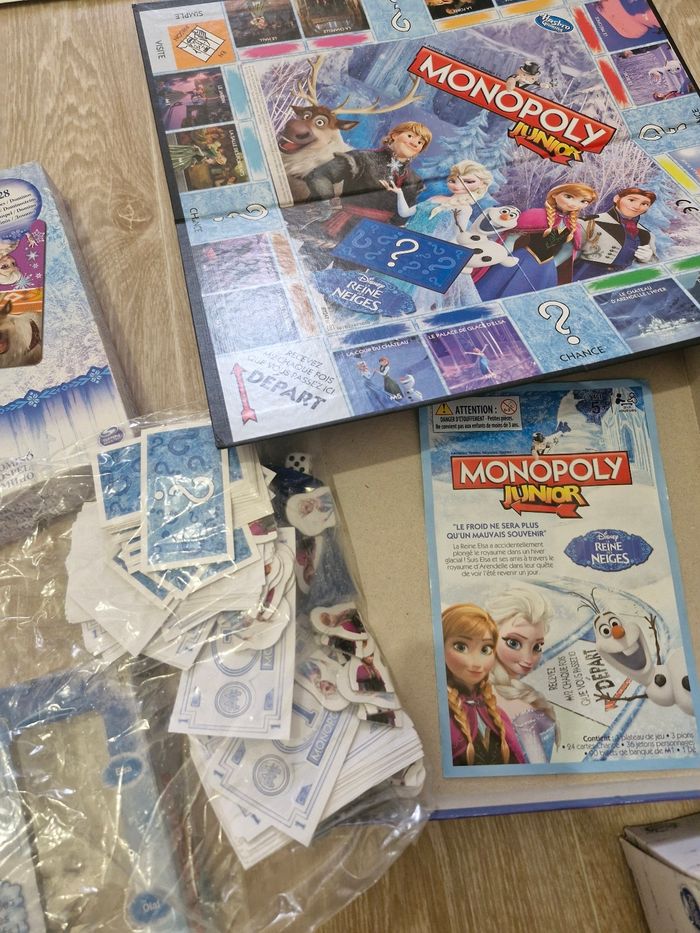 OFFERT : jeu Monopoly Reine des Neiges (on l'a donné à ma fille mais on n'y joue pas, je suppose qu'il est complet) et jeu de Dominos Reine des Neiges (celui-là, on y a beaucoup joué à tel point qu'il manque 2 pièces mais ça n'empêche pas le jeu).