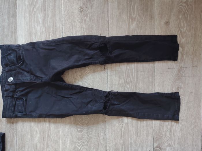 Ce lot se compose de 4jeans slim, trouée aux genoux Les jeans se sert à la taille Taille 4/5 ans 110cm #jean #jeantroués #jeanslim #jeankiabi #kiabi #jeankiabinoir #jeankiabibleu #melodyleewayne