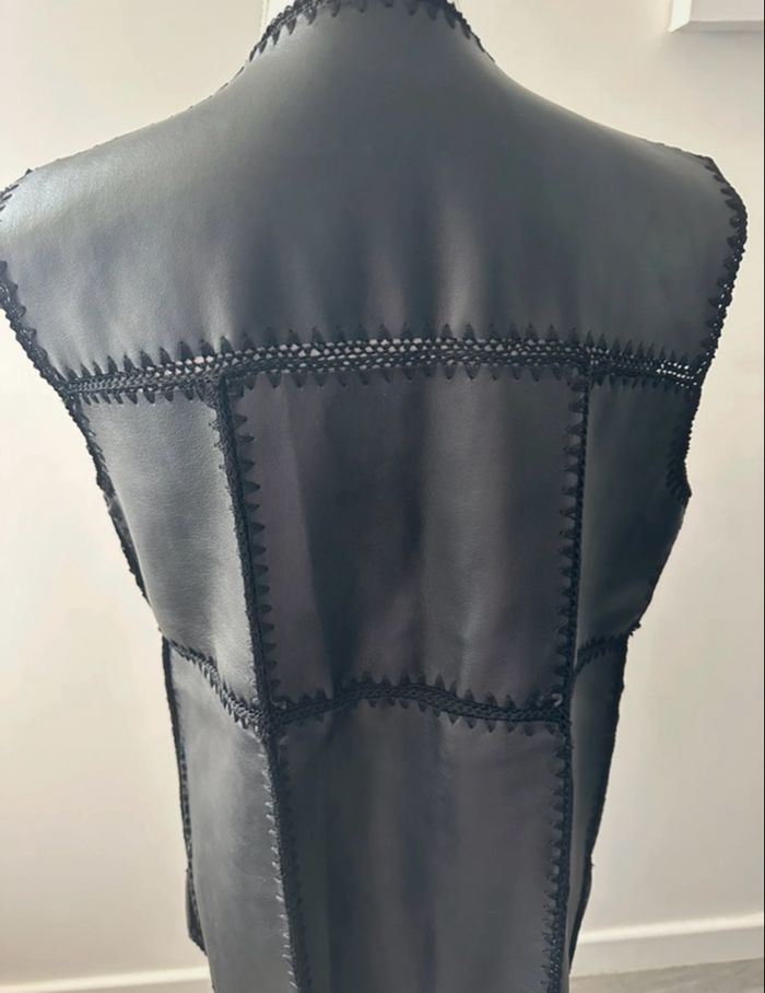 Cardigan boléro patchwork sans manche en cuir Vintage T40 L - photo numéro 4