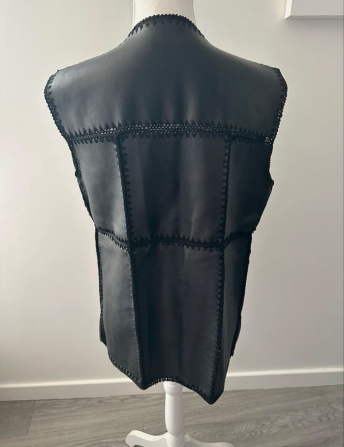 Cardigan boléro patchwork sans manche en cuir Vintage T40 L - photo numéro 3