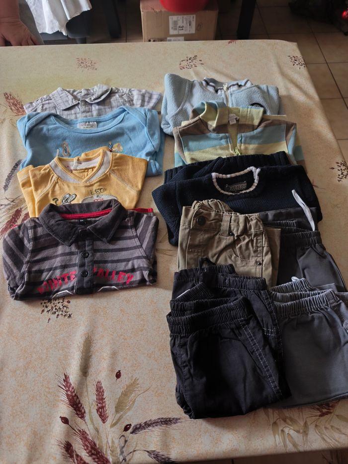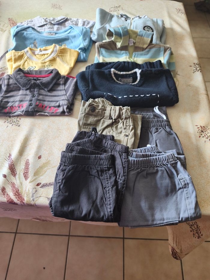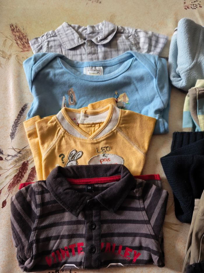 Vend lot de vêtements bébé garçon 6 mois 3 Tee shirt manches courtes 1 chemise manches courtes 2 vestes 1 pull 4 pantalons Soit 11 vêtements Très bon état général Differentes marques 12€