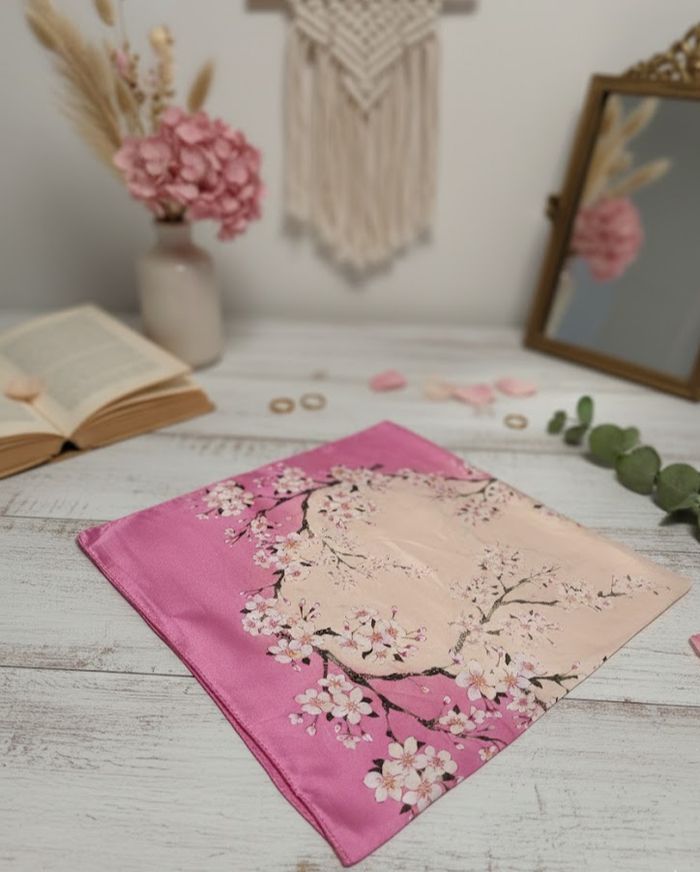 Foulard Romantique Fleurs de Cerisier – Rose Poudré & Beige – Style Japonisant