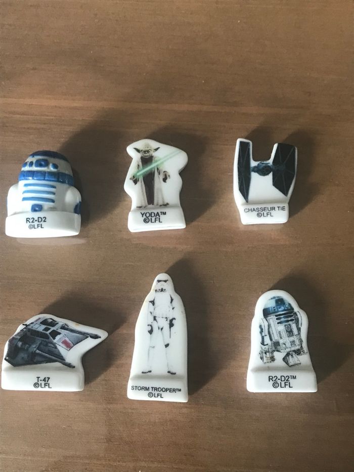 6 fèves StarWars ( Yoda; R2D2 ;T-47 ; Storm Trooper ; Chasseur Tie ). De nombreuses fèves en vente dans mon dressing, si vous êtes intéressé par plusieurs articles n’hésitez pas à me demander pour que je fasse une annonce avec les articles choisis. Nous discuterons du prix et je mettrai format petit colis afin de réduire les frais d’envoi.