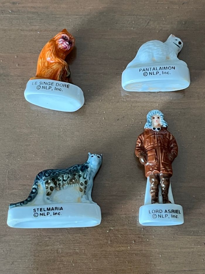 1 fève Pantalaimon 1 fève Lord Asriel 1 fève Le singe doré 1 fève Stelmaria De nombreuses fèves en vente dans mon dressing, si vous êtes intéressé par plusieurs articles n’hésitez pas à me demander pour que je fasse une annonce avec les articles choisis. Nous discuterons du prix et je mettrai format petit colis afin de réduire les frais d’envoi.