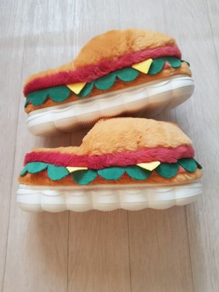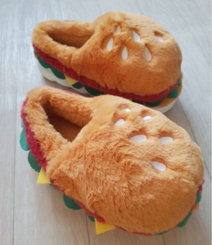 Chassons en forme hamburgers neuf' rembourré de fourrure, très doux et confortable. Taille 40/41 mais vont aussi à la taille 39.