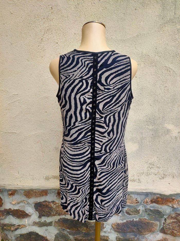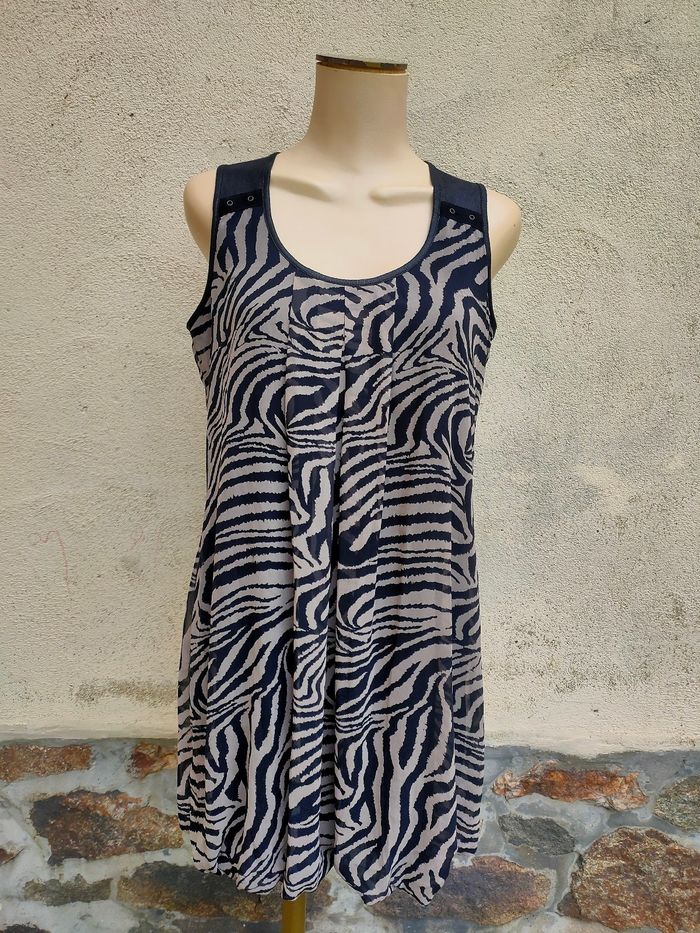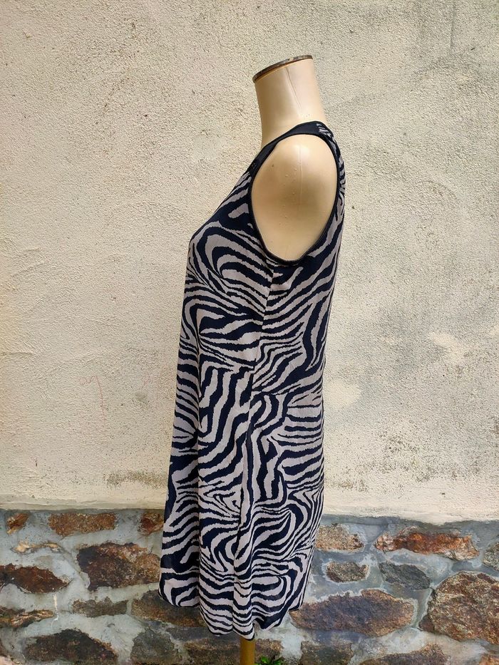 Jolie robe fluide coloris beige et noir, col rond sans manches, la robe est doublé. Marque Patrice Breal, taille 42. Elle est en très bon état, a été très peu porté.