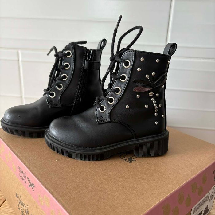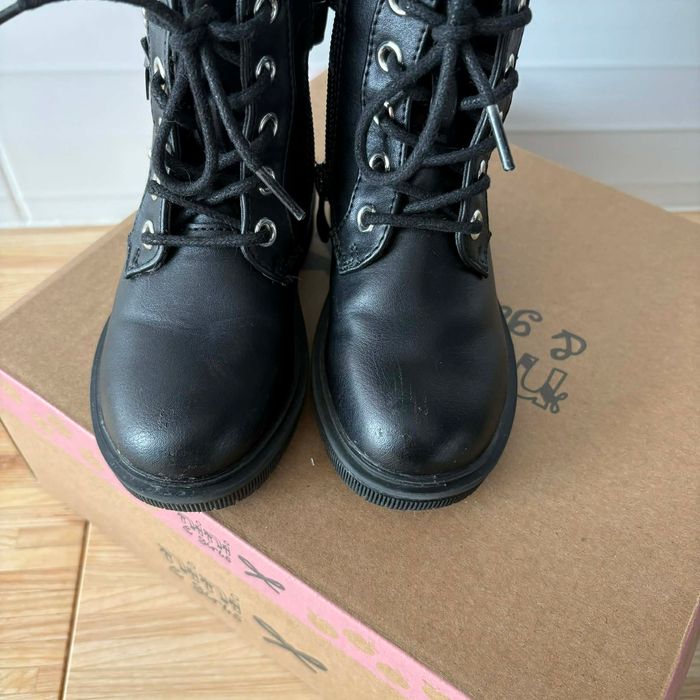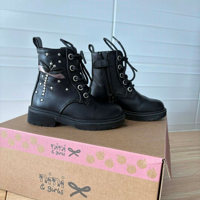 Bottines noires de la marque Nini & Girls, pointure 21, extérieur similicuir avec laçage devant et fermeture zippée sur le côté pour un enfilage facile.