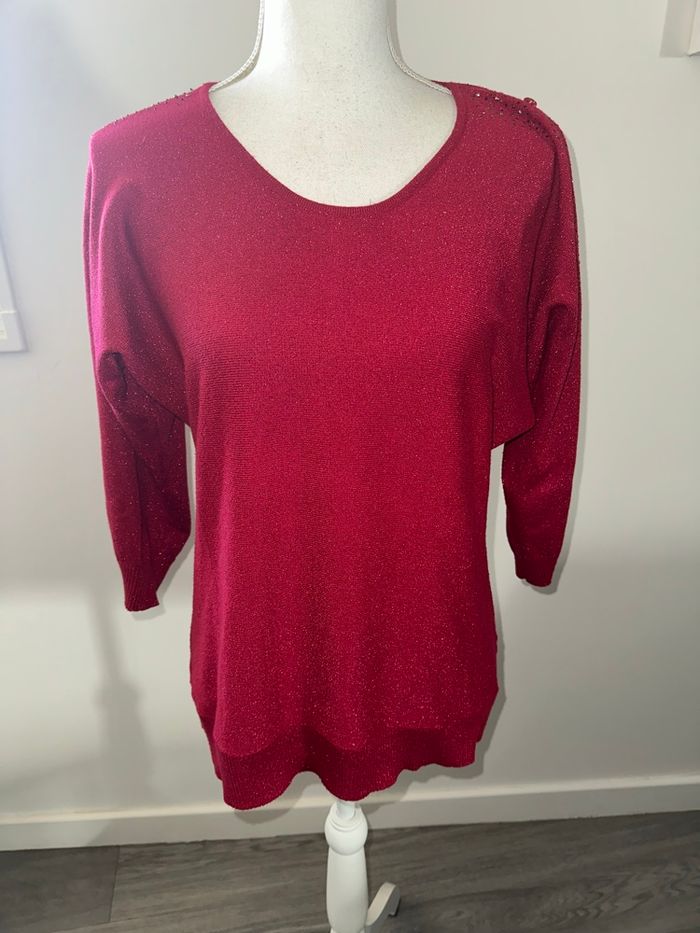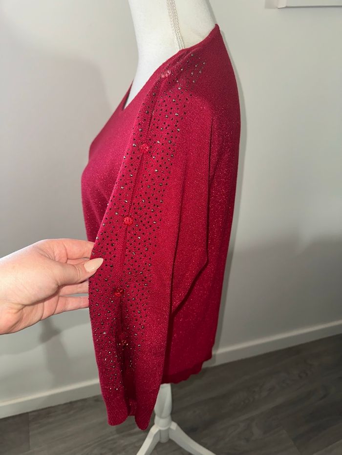 Pull rouge bordeaux pailleté et strass argenté ajouré Armand Thiery T38 M - photo numéro 2
