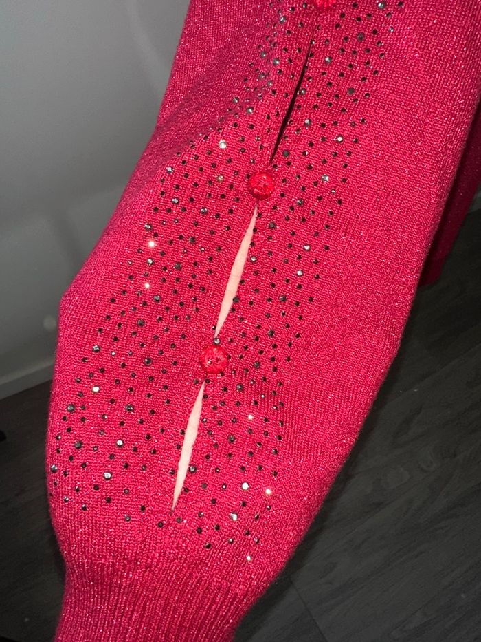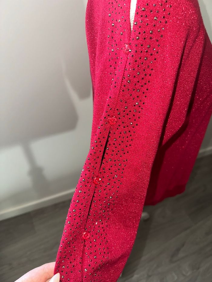 Pull rouge bordeaux pailleté et strass argenté ajouré Armand Thiery T38 M - photo numéro 5