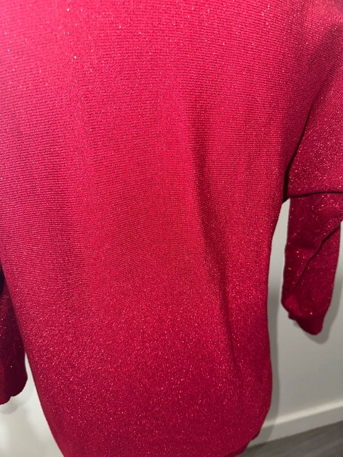 Pull rouge bordeaux pailleté et strass argenté ajouré Armand Thiery T38 M - photo numéro 6