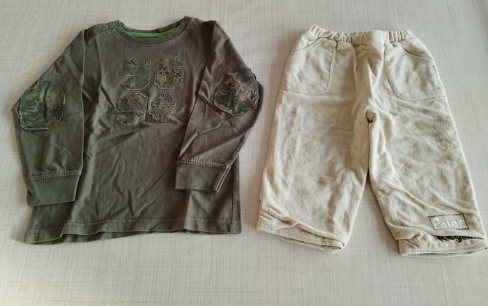 Lot garçon 3/4 ans composé de : 1 pull fin Kid's Graffiti 3 ans 1 pantalon velours doublé (étiquette coupée mais je dirais 4 ans) 2 tshirts manches courtes sous vêtements Mots d'enfants 36 mois 1 tshirt sans manche sous vêtements Palomino 98/104 cm 1 polo manches courtes Cars 104 cm 1 polo manches courtes Tissaia 4ans (légère tâche hyper discrète, voir photo) 1 tshirt manches longues In Extenso 4 ans ( tout petit trou, voir photo) 1 slip Petit Bateau 3 ans 1 maillot de bain NKY 3 ans Très bon état Réduction activée sur les lots