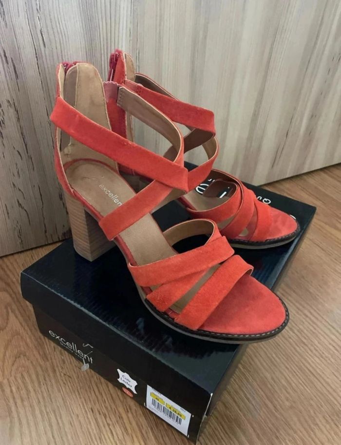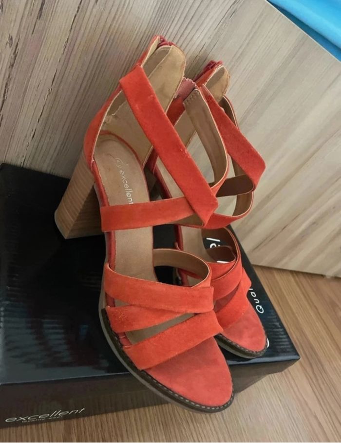 Sandales en cuir orange excellent taille 40 - photo numéro 1