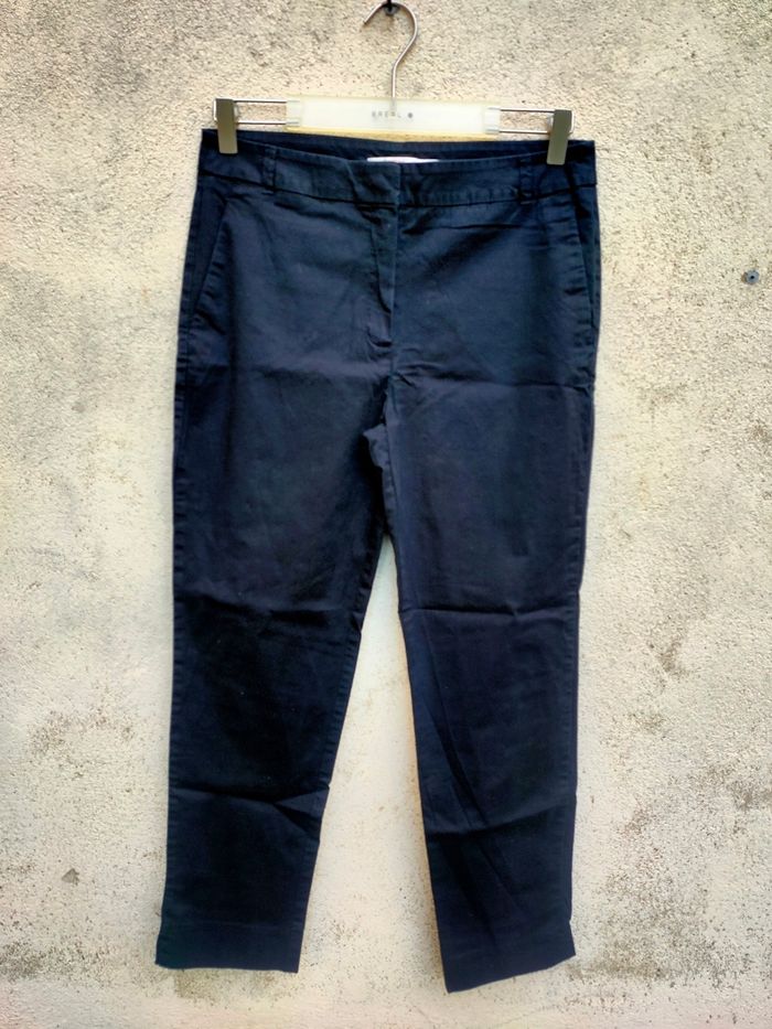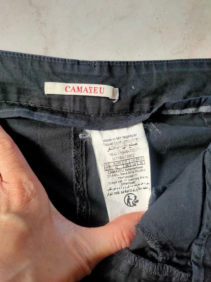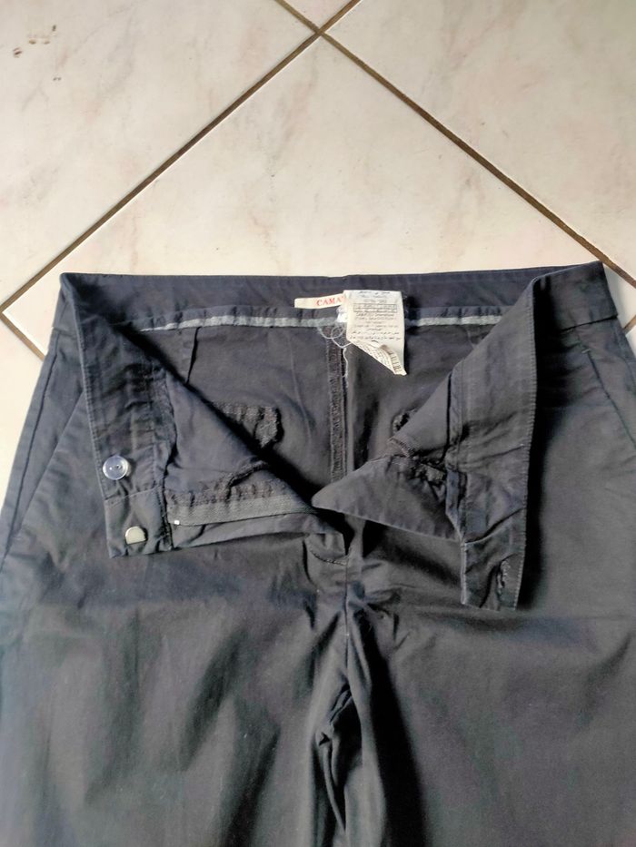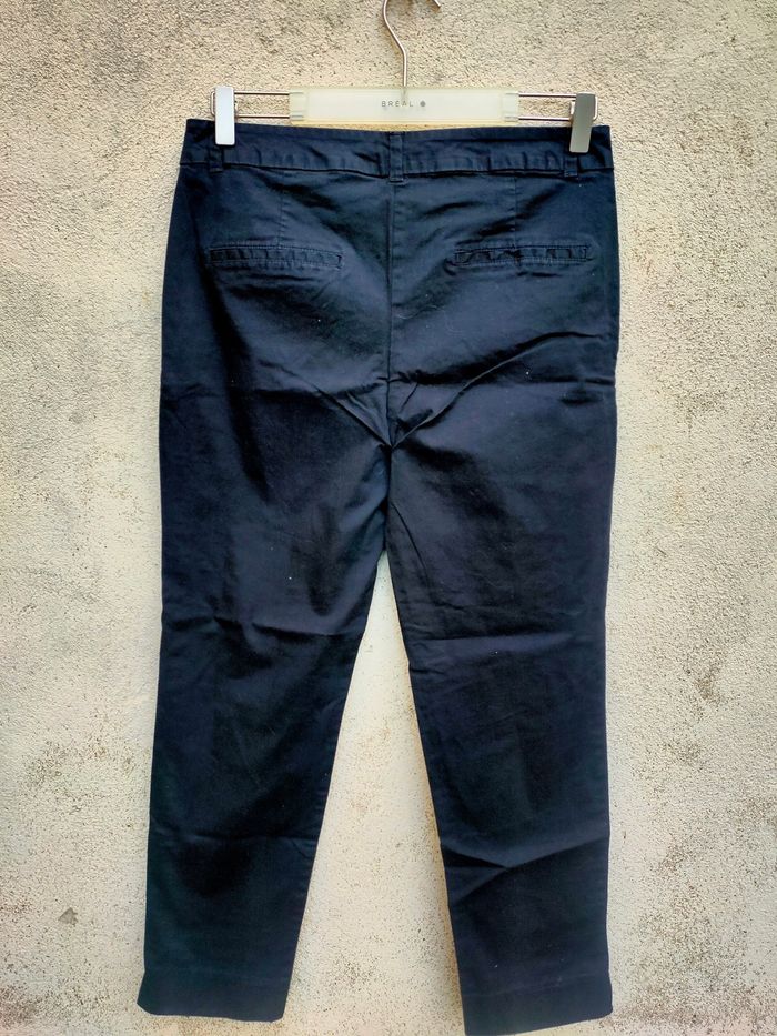 Pantalon 7/8eme coloris noir, coupé plutôt simple, fermetures crochet et boutons, passant a la taille pour y glisser une ceinture au besoin. Marque Camaïeu, taille 42 FR, les mesures sont détaillées dans l'annonce et en photos. Il est en très bon état.