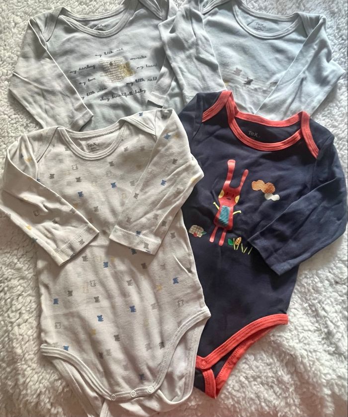 Lot de 4 bodies manches longues Marque tex Taille 12 mois Bon état
