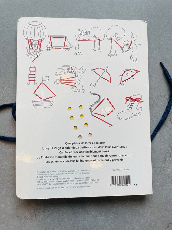 Livre pour apprendre à passer des lacets, pédagogie des mouvements