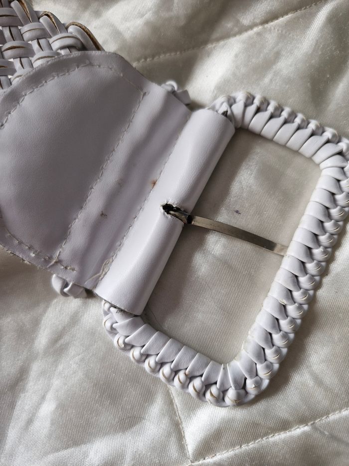 Superbe ceinture large 💮Très bel effet tissé ⚕️Large boucle ⚪️Couleur blanc 🌟 Marque Inconnu 📌Mesures Longueur totale 103cms Réglable Hauteur 7.5cms Boucle de 10cms 📷Bien regarder les photos pour le détail 🚨Défauts à signaler Quelques traces d'usureaj niveau de zone a trou suite à l'utilisation Je n'ai pas remarqué d'autre anomalie 💲Faites des économies en créant un lot pour profiter des réductions actives dès 2 articles #naya59199ceinture #naya59199femme #naya59199accessoire