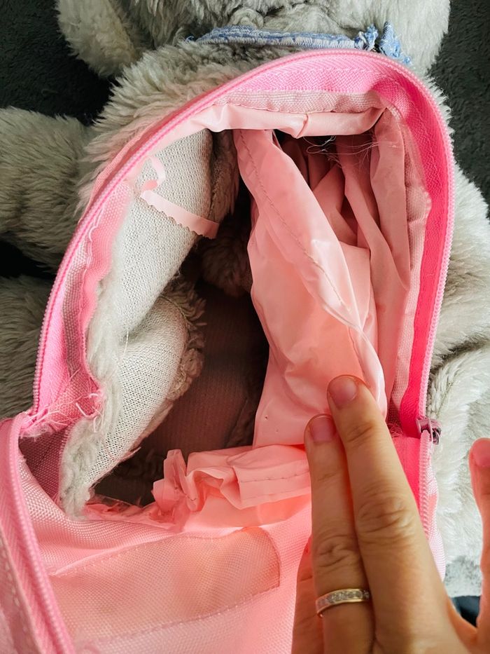 Seul défaut : le plastique à l’intérieur de la poche abîmé (voir photo)
