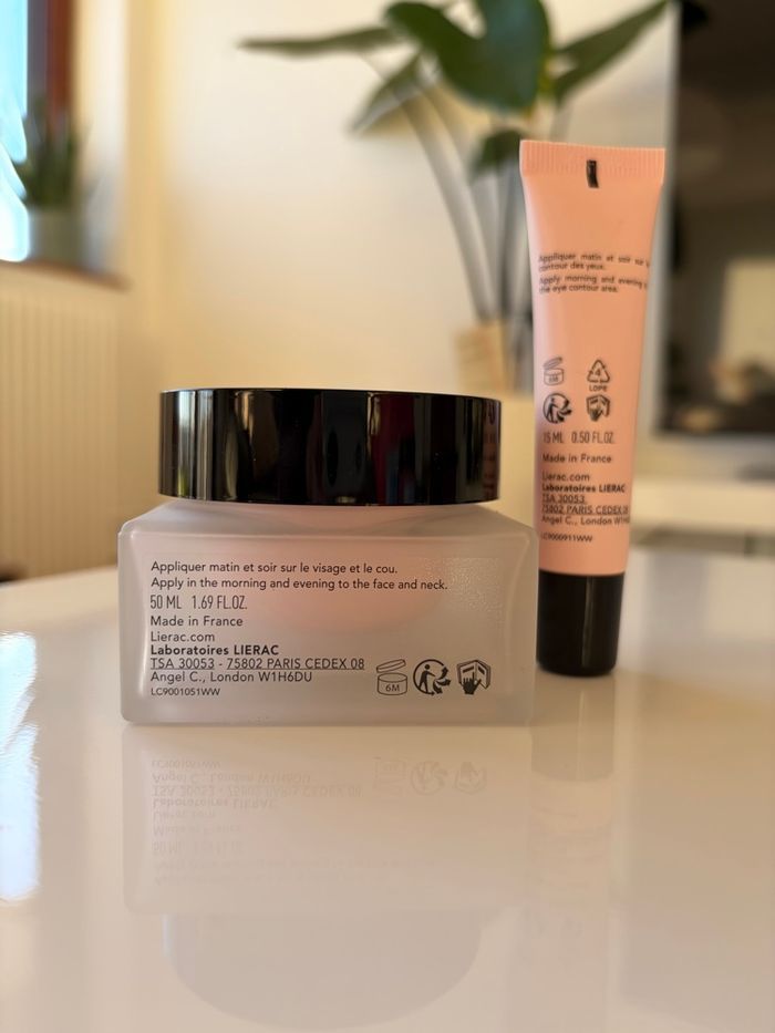 -> gel crème réhydratant éclat * neuve avec opercule 50ml * pot en verre * 27€ sur le site Lierac -> soin réhydratant contour des yeux * neuf 15 ml * 22 € sur le site Lierac