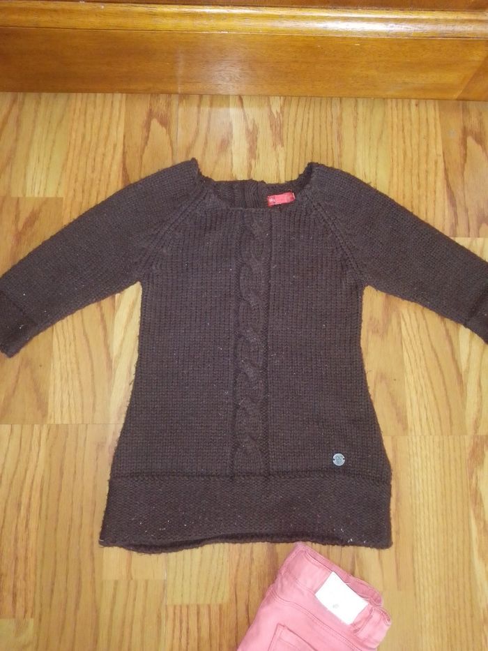 Lot 12 mois composé d'une robe lainage style robe pull de marque Wapi Baby ainsi que d'un pantalon coton denim Zara. En très bon état peu porté. A noter des bouloches sur la robe lainage apparues dès le premier lavage. Prix ferme merci