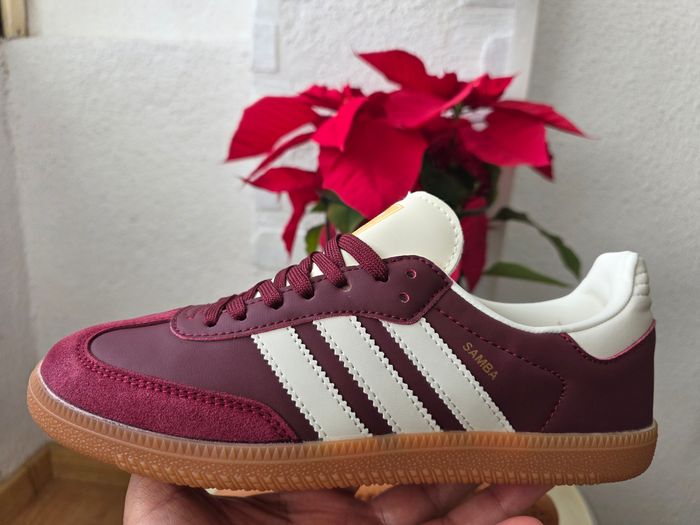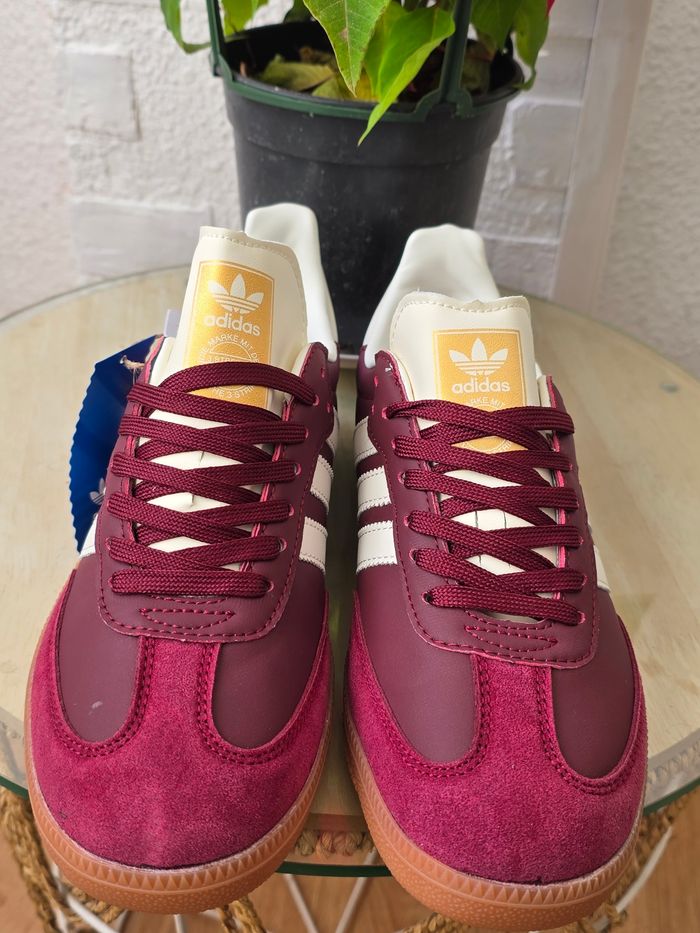 Baskets Adidas Samba OG bordeaux avec détails blancs et semelle en caoutchouc, pointure 40