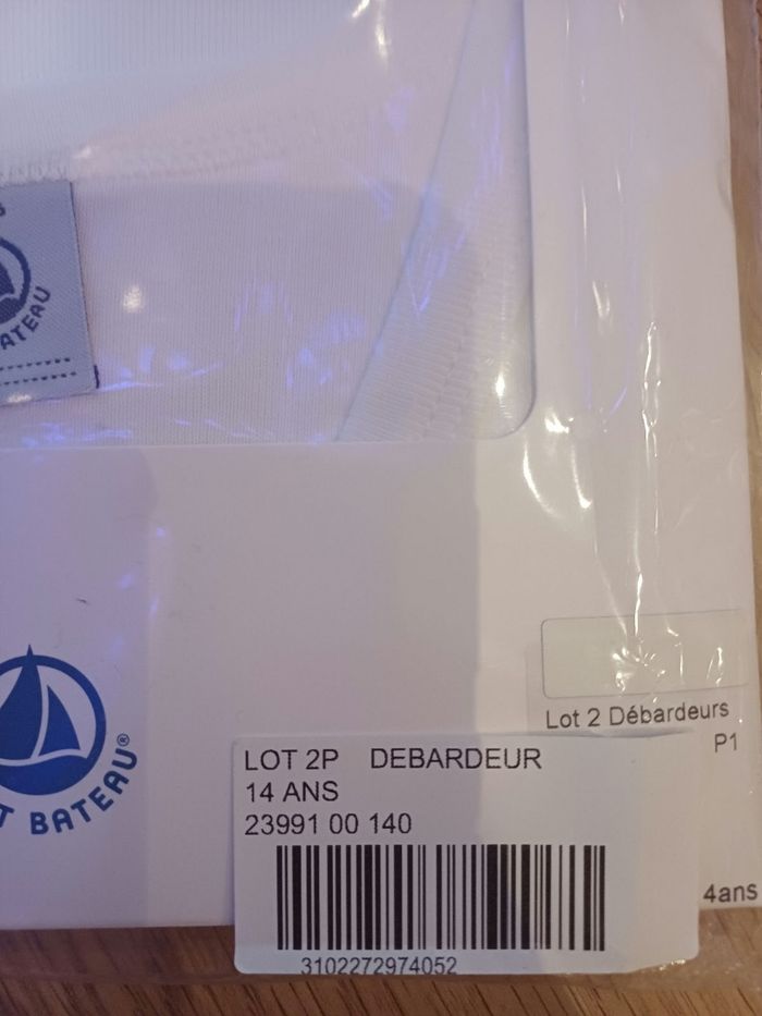 Vends lot de 2 maillots de corps sans manches Petit Bateau en 14 ans. État neuf, encore emballés.