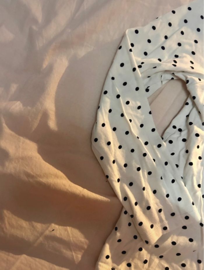Son imprimé à pois noirs sur fond blanc est intemporel, et le grand cœur en sequins réversibles sur le devant apporte une touche originale et ludique (change de couleur en passant la main).