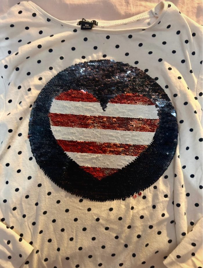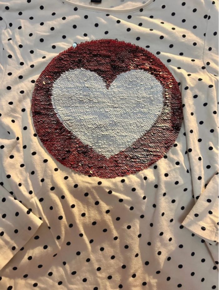 🔹 Détails : Manches longues, col rond, motif cœur en sequins réversibles