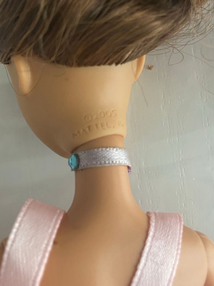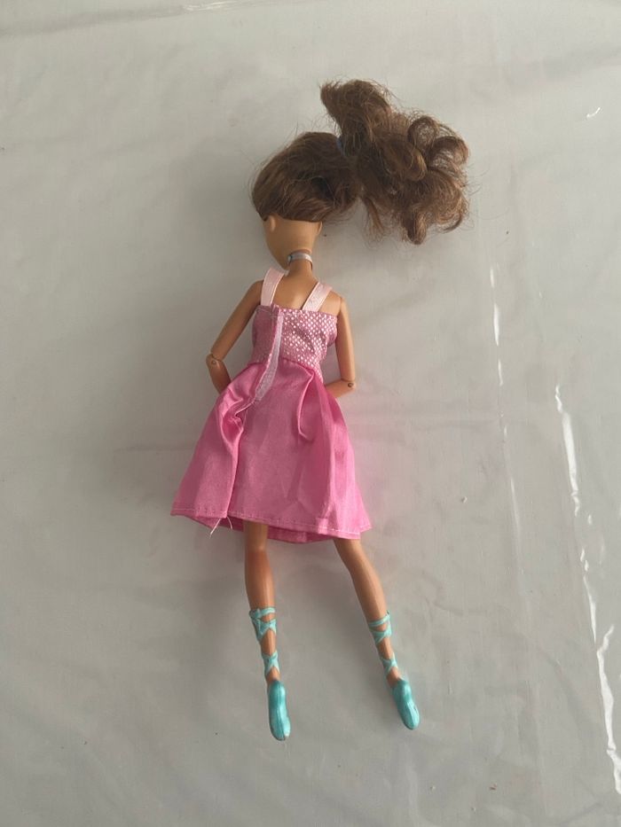 Détails de l'objet • Marque : Mattel • Année : 2005 (marquage sur la nuque) • Personnage : Barbie • Thème : Danse classique / Ballerine • État : Occasion / Bon état général Description de l'objet Vends une superbe poupée Barbie de la marque Mattel, datée de 2005. Ce modèle articulé est idéal pour les collectionneurs ou pour offrir une seconde vie à ce jouet classique. Caractéristiques et détails : • Visage : Très beau maquillage bien conservé, yeux bleus et lèvres mauves. • Chevelure : Cheveux châtains clairs longs, coiffés en queue de cheval. • Tenue : Porte une robe de danseuse rose composée d’un bustier scintillant à pois argentés et d’un jupon en satin rose. • Accessoires : Livrée avec ses chaussons de danse (pointes) bleus à lacets moulés et un tour de cou assorti. • Articulation : Bras articulés aux coudes pour permettre des poses de danse réalistes. État : La poupée est en bon état d'usage. Les cheveux mériteraient un petit brossage pour retrouver tout leur éclat. La tenue est propre et les articulations fonctionnent bien. (Merci de bien regarder les photos pour les détails).
