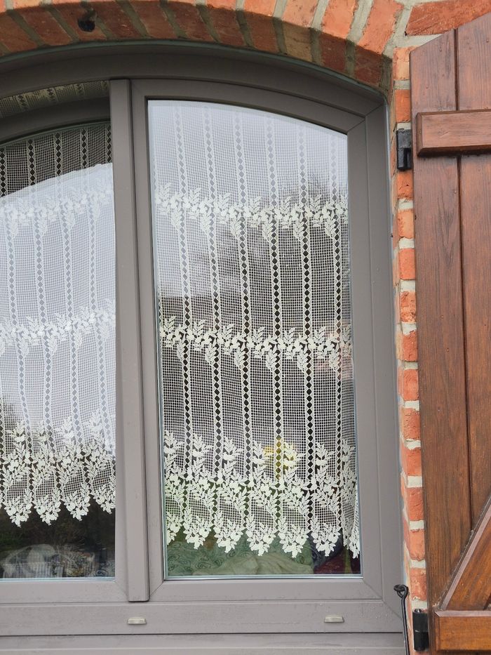 Lots des 4 magnifique rideau de type brise-bise (ou vitrage) en dentelle blanche, idéal pour apporter une touche romantique, bohème ou "campagne chic" à votre intérieur.