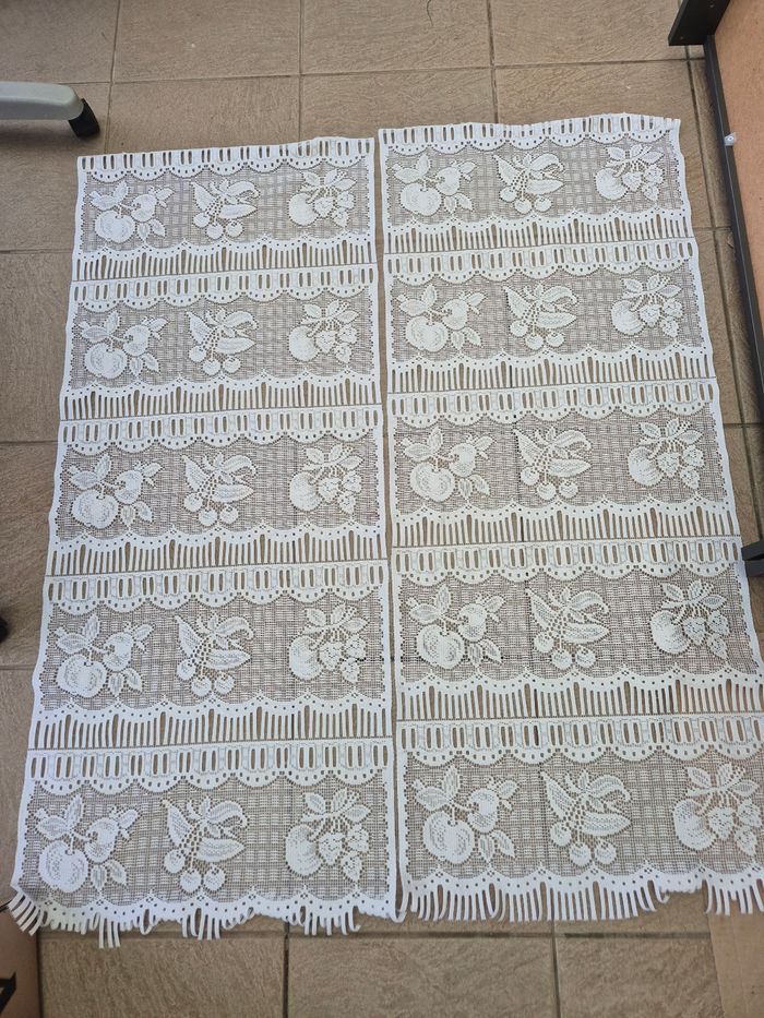 Magnifique paire de rideaux vitrages (brise-bise) en dentelle blanche, parfaits pour apporter une touche de charme rustique ou "cottagecore" à votre cuisine ou votre intérieur.