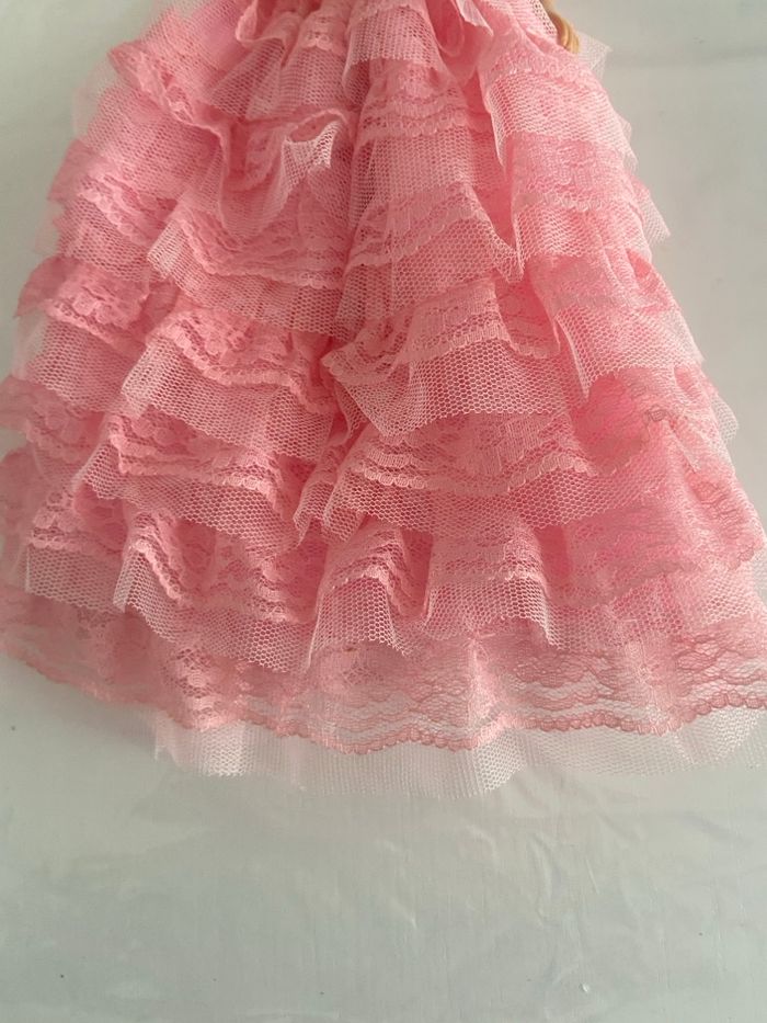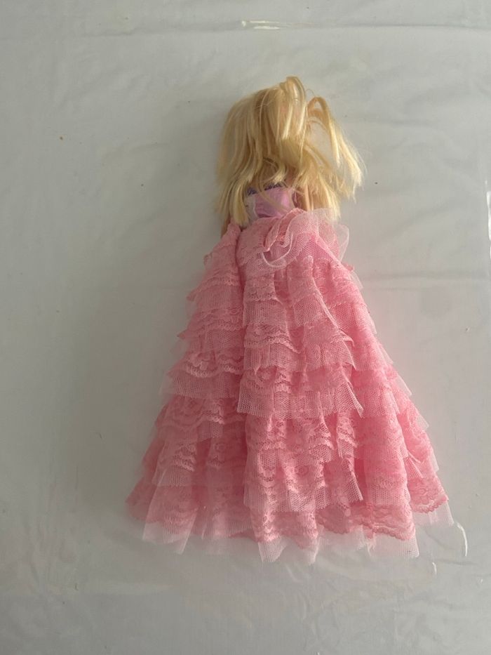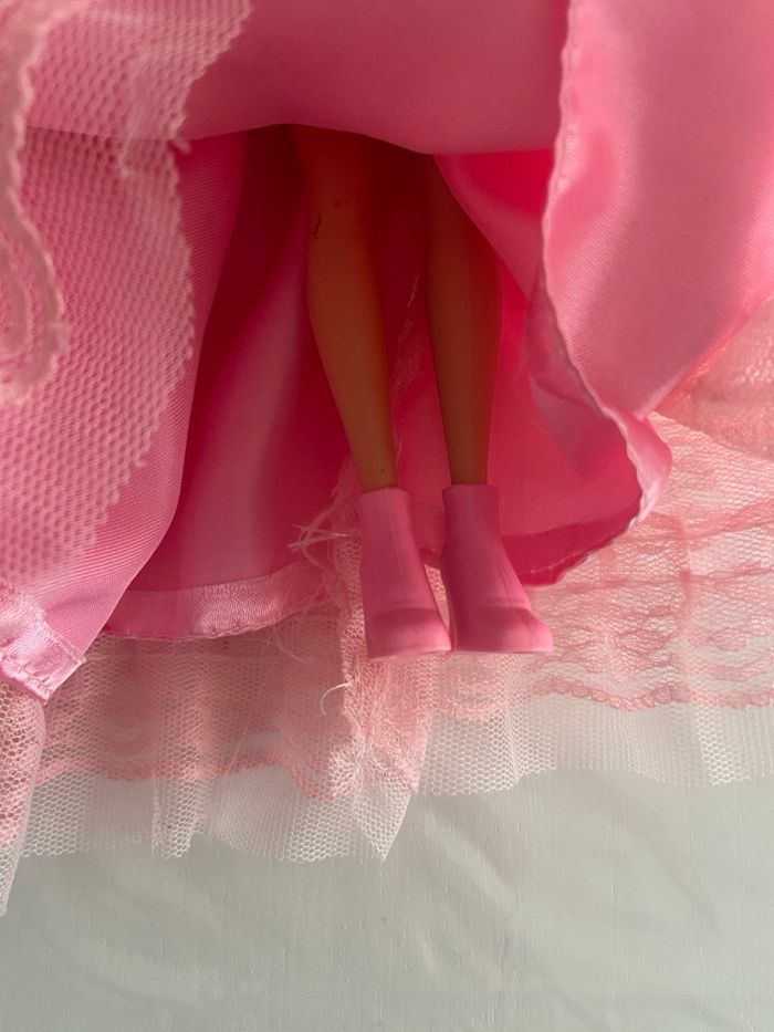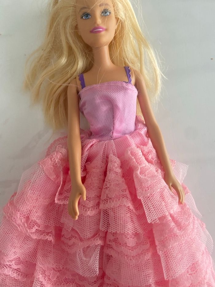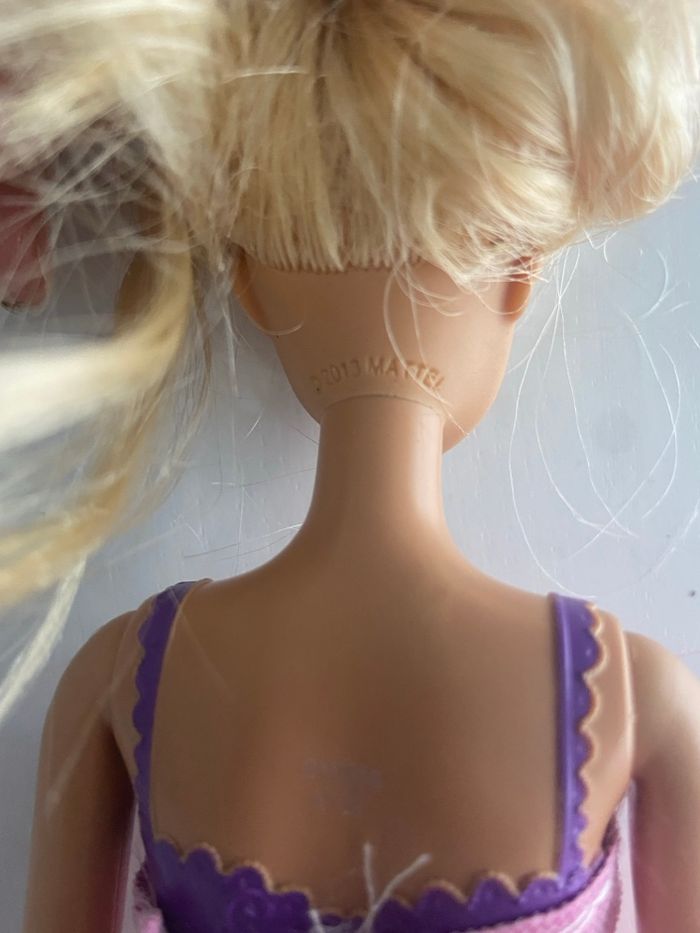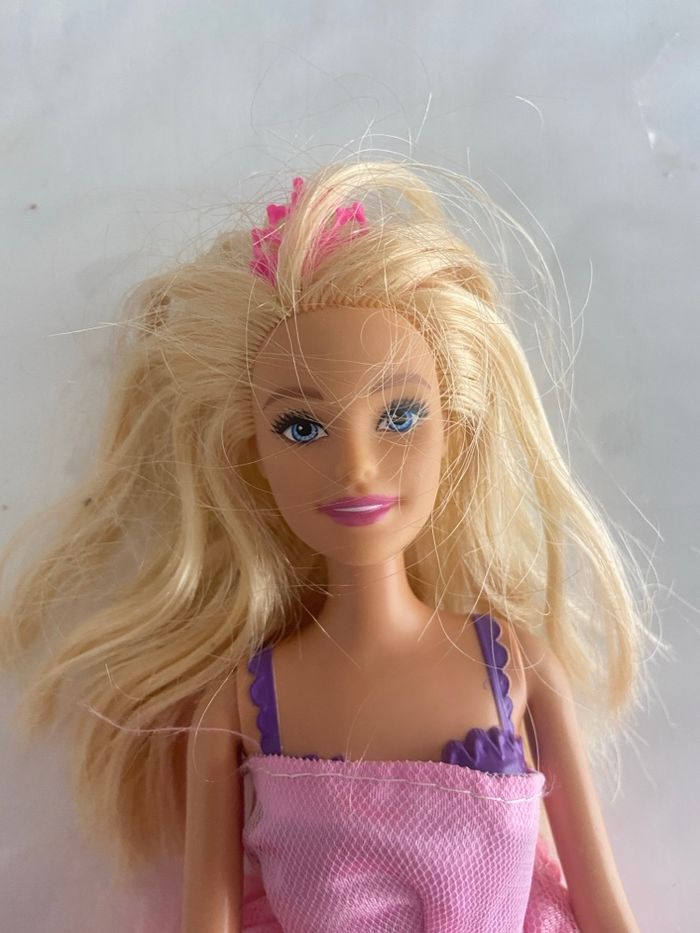 • Marque : Mattel • Personnage : Barbie • Année du moule (tête) : 2013 • Thème : Princesse / Sirène / Film • État : Occasion / Très bon état Description Description du produit : Vends magnifique poupée Barbie inspirée du film "Barbie : La Magie des Perles". Elle porte sa robe de bal emblématique. • Tenue : Robe rose à plusieurs étages de dentelle et tulle, rappelant des écailles et des vagues. Le bustier est rose satiné avec des bretelles violettes dentelées. • Accessoires : La poupée porte ses bottines roses d'origine et un petit diadème rose dans les cheveux. • Visage : Très beau maquillage avec des yeux bleus et des lèvres roses. • Marquage : "© 2013 Mattel" à l'arrière de la tête. État de l'objet : • Poupée en très bel état général. • Les cheveux blonds sont longs et bien conservés. • La robe est propre et les volants en dentelle sont intacts. • Vendue complète avec ses chaussures et son diadème, telle que présentée sur les photos. Conseils pour la vente